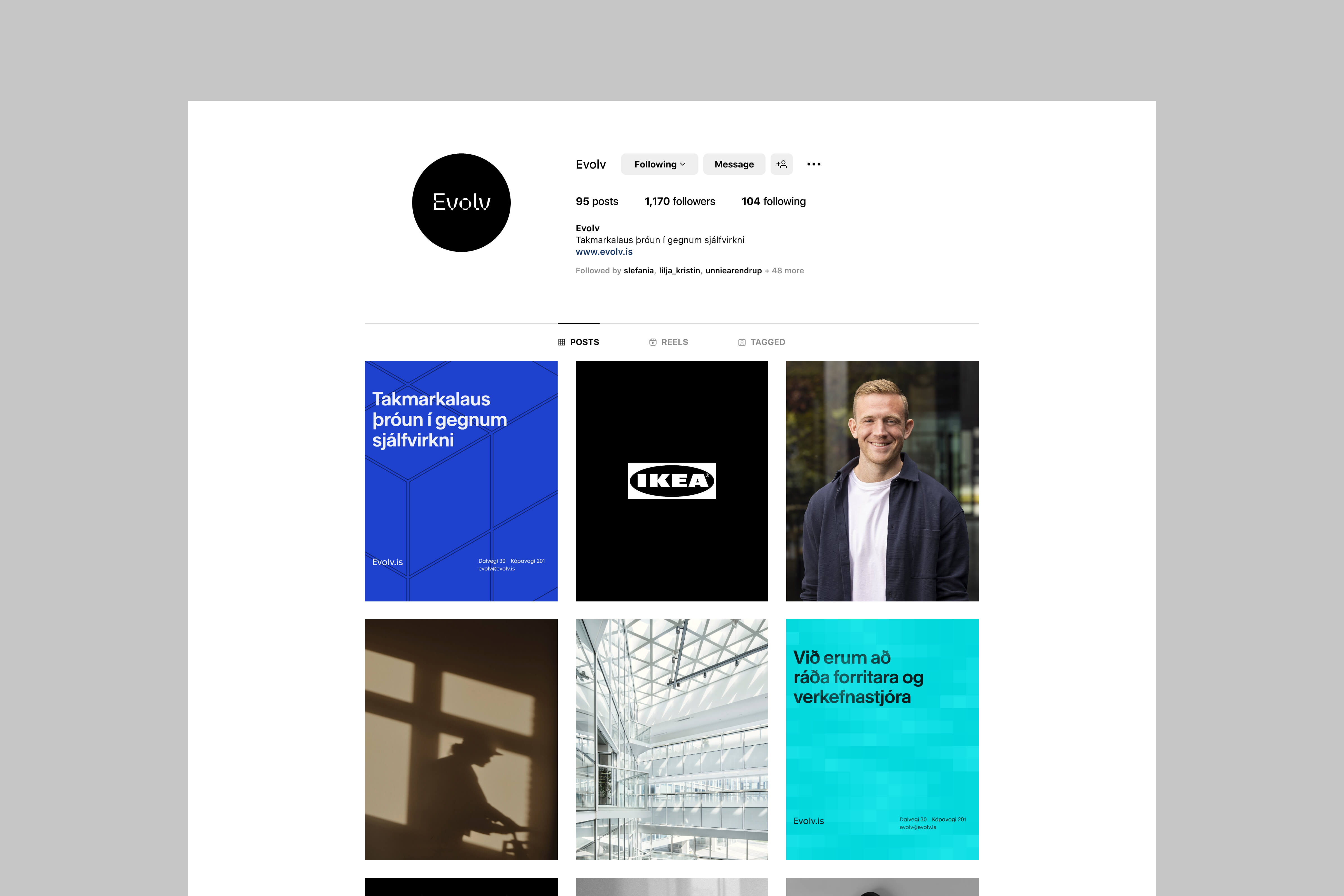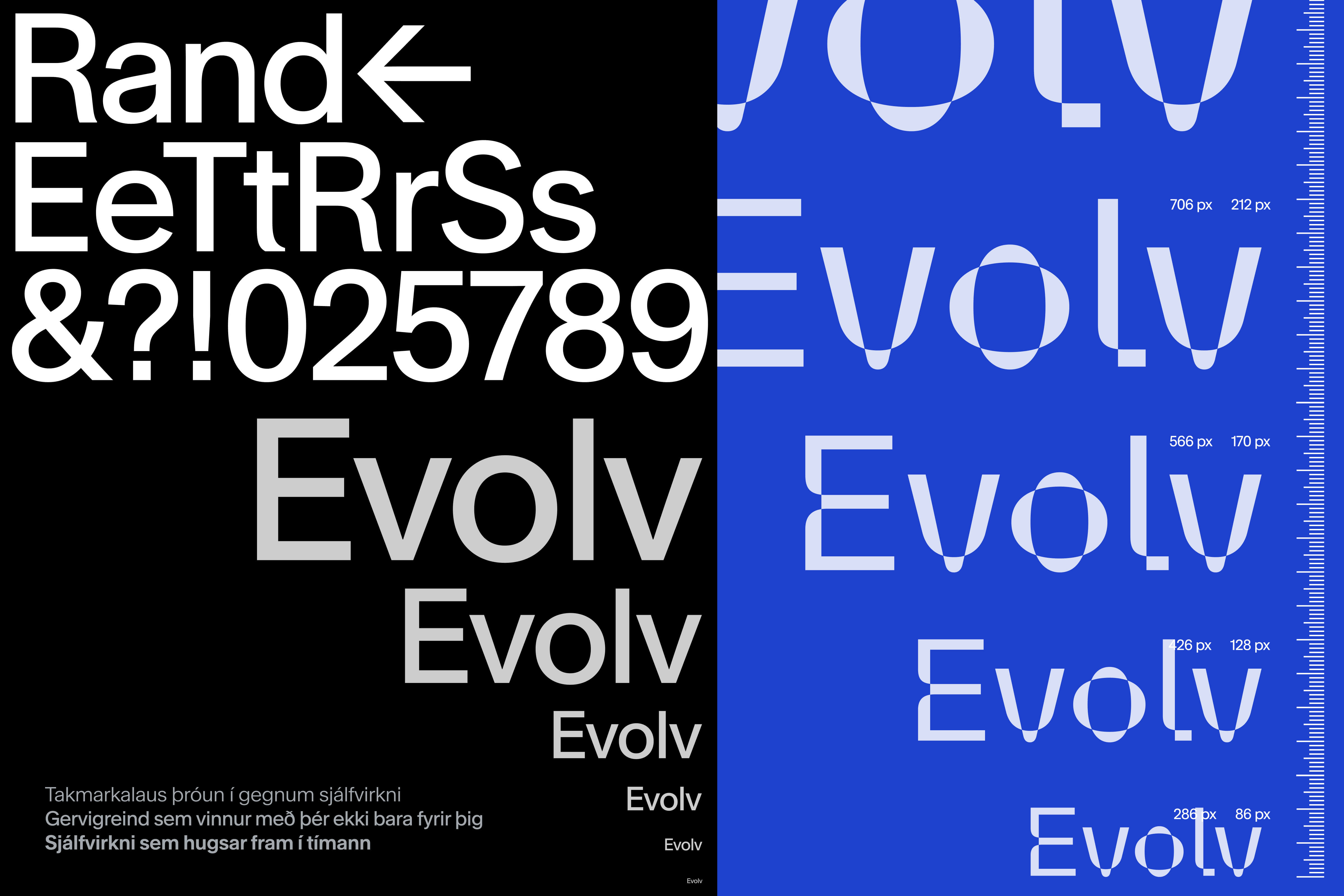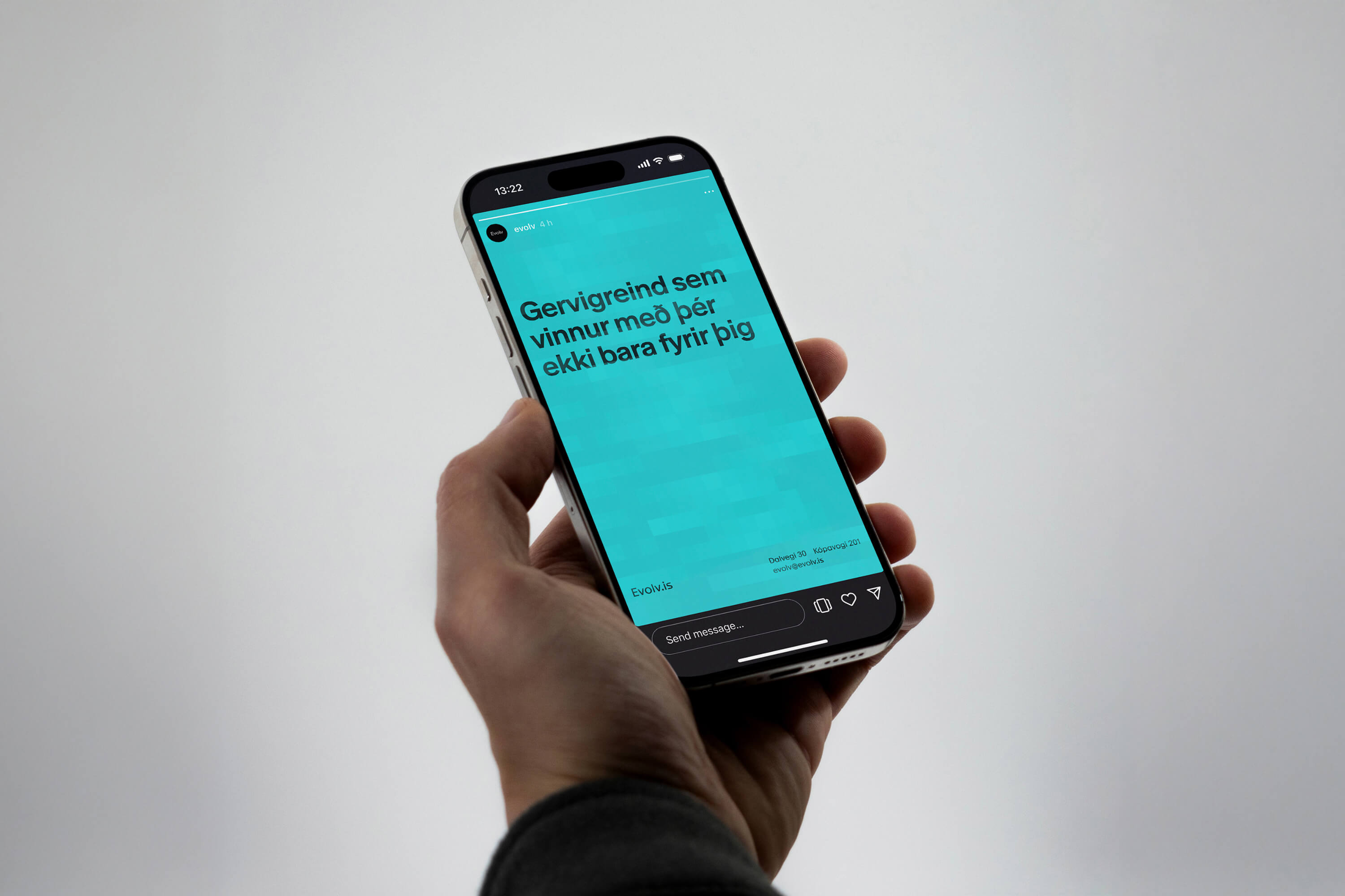 Visual identity for Evolv, designed to reflect their focus on intelligent automation. Evolv is a Reykjavík-based software company made up of specialists in technology, operations, and process design. They create solutions that simplify complex workflows in line with business strategy.