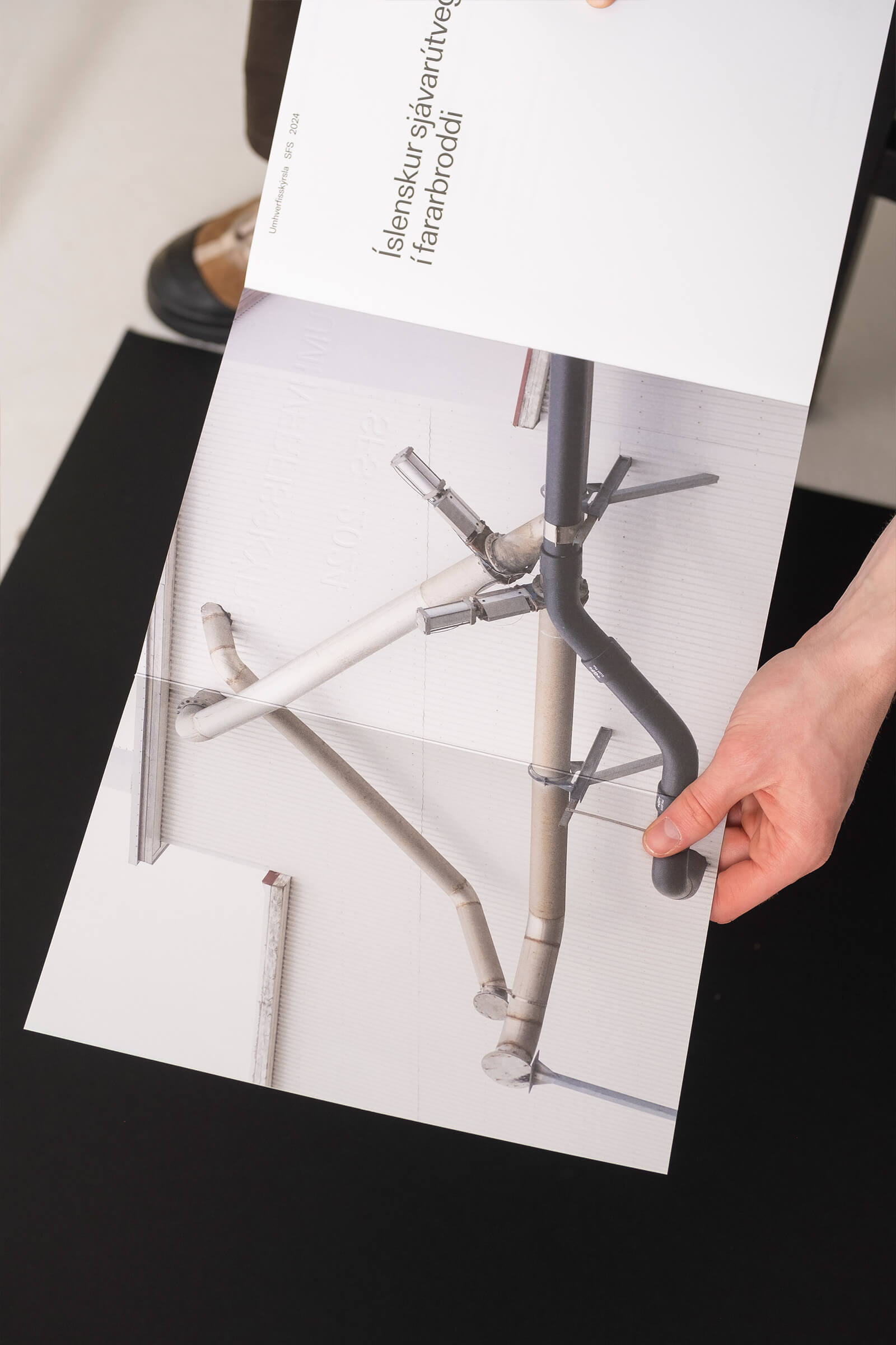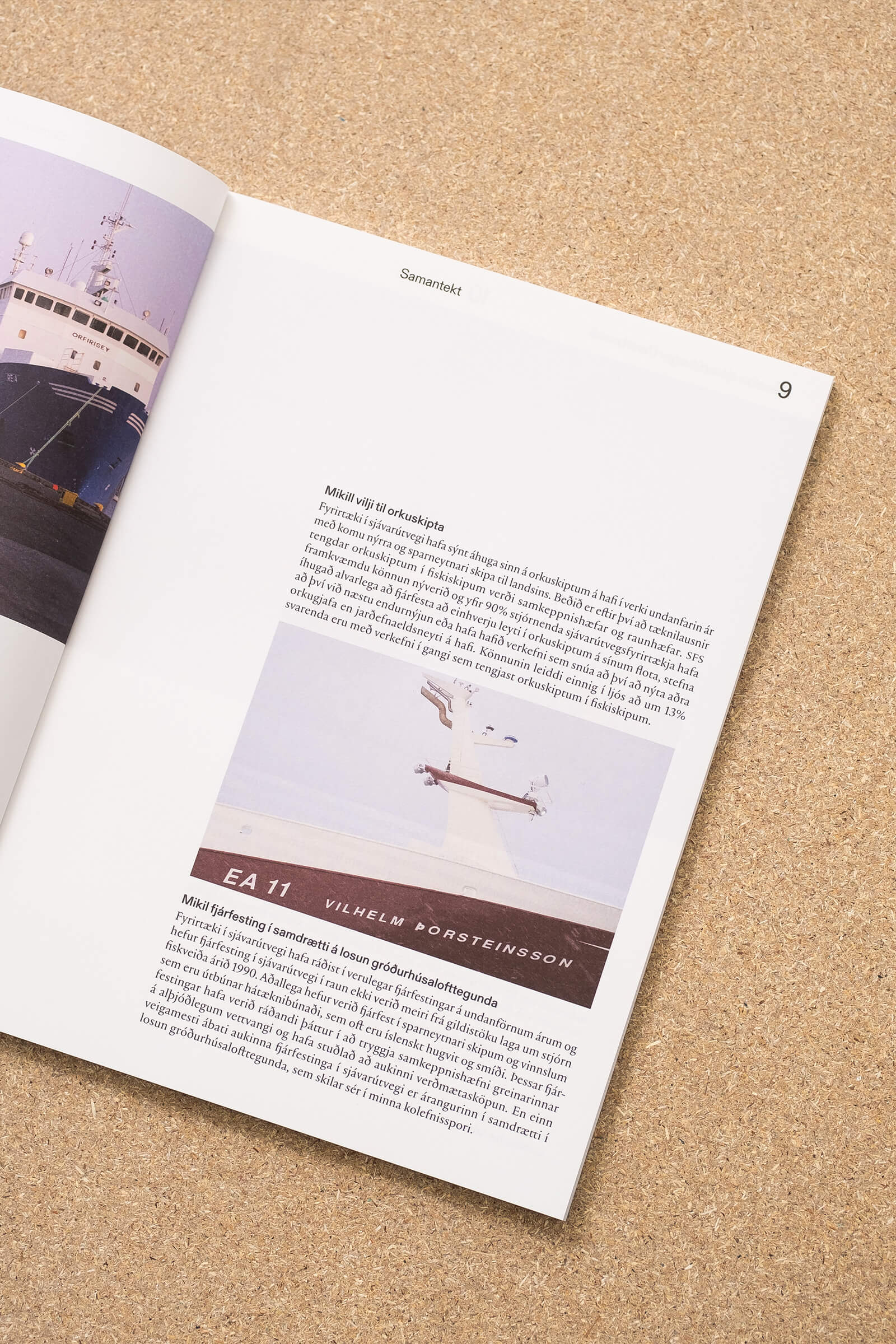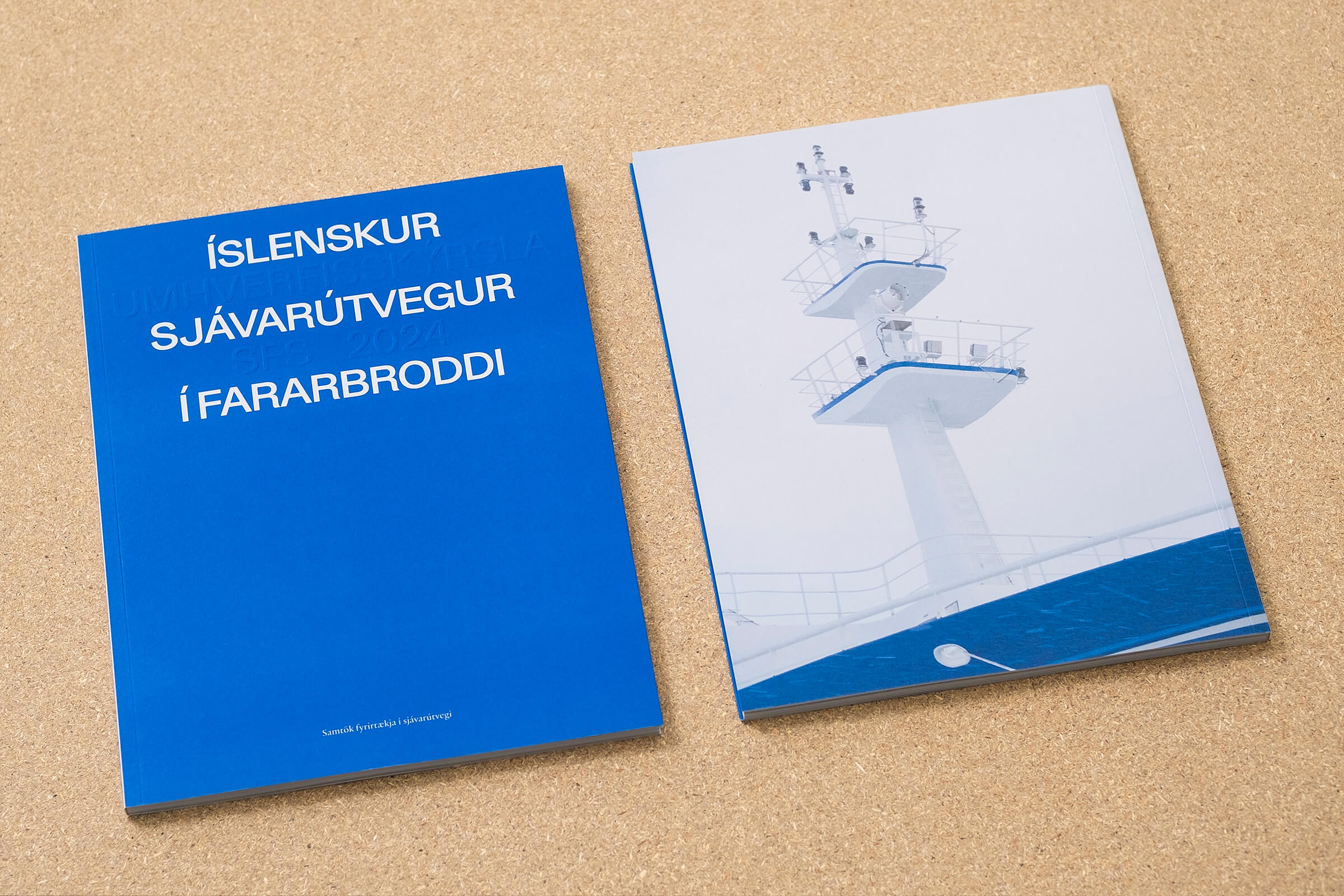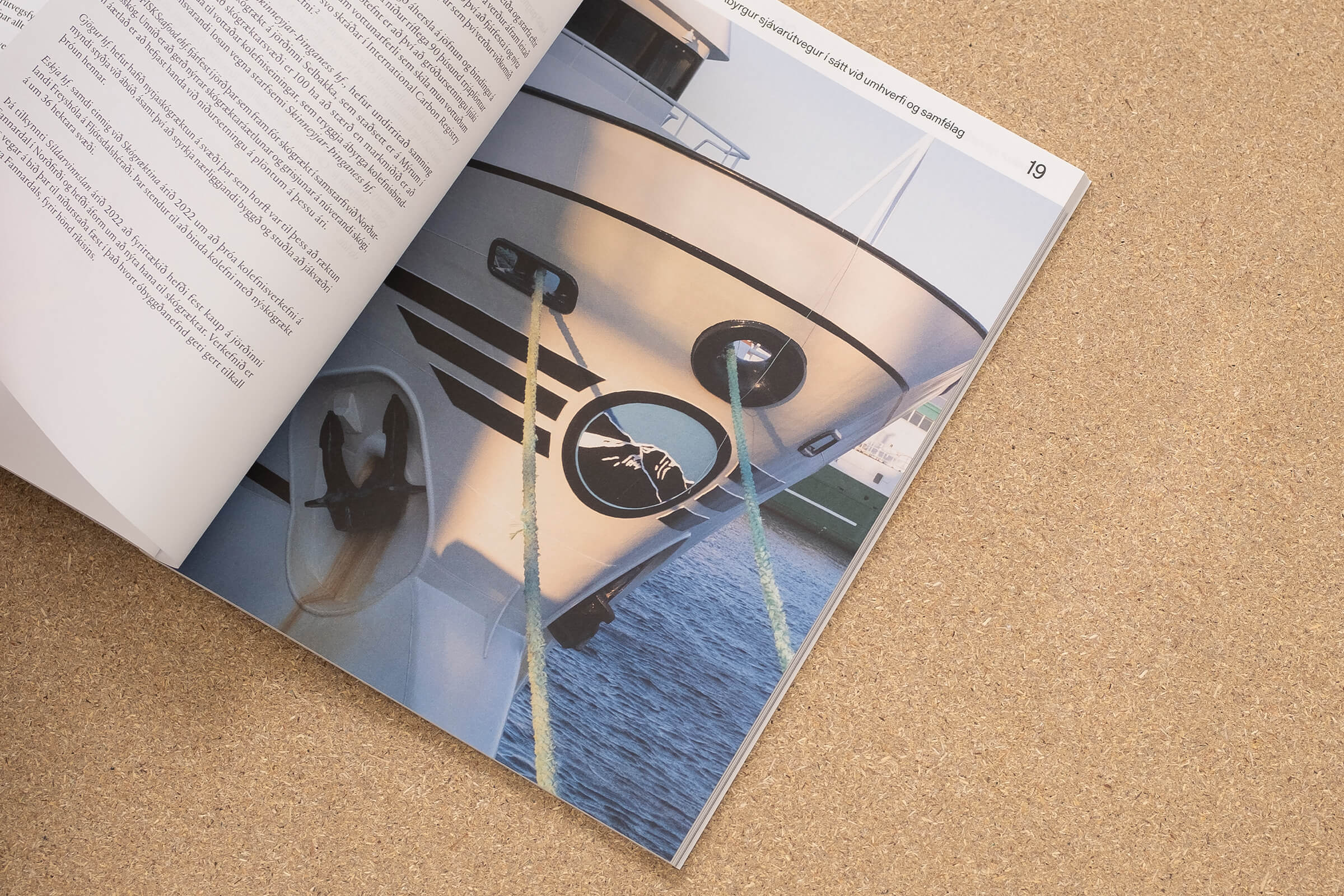 We produced the editorial in close collaboration with photographer and graphic designer Kjartan Hreinsson. The title of the report is blind embossed in reference to markings of icelandic ships. The report features Kjartan Hreinsson’s photographs of fishing vessels and other aspects of the fishing industry. Offset-printed by Prentmet Oddi, with interior pages on 100g Munken Polar Rough paper while the cover is on the sturdier 300g Munken Polar stock.