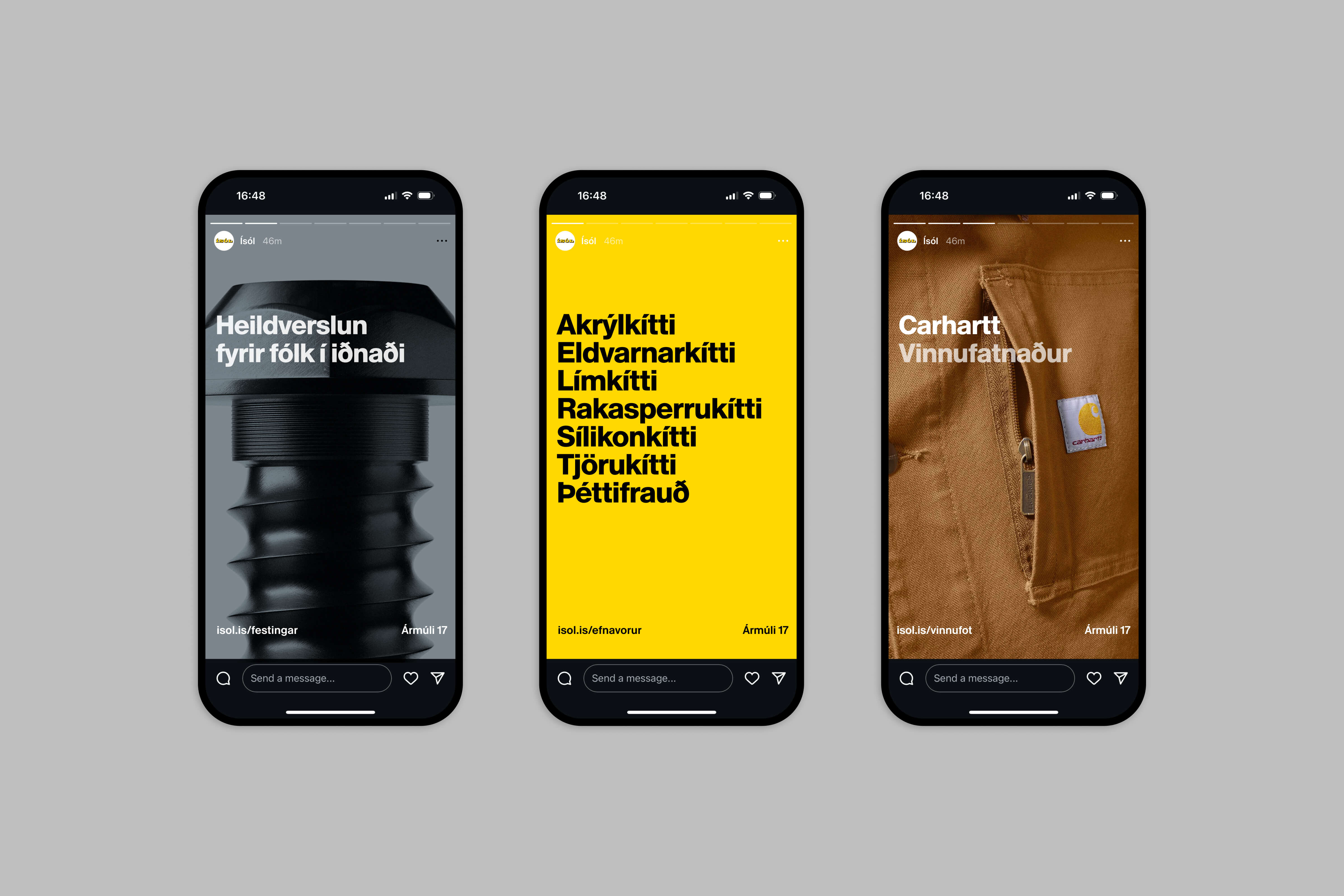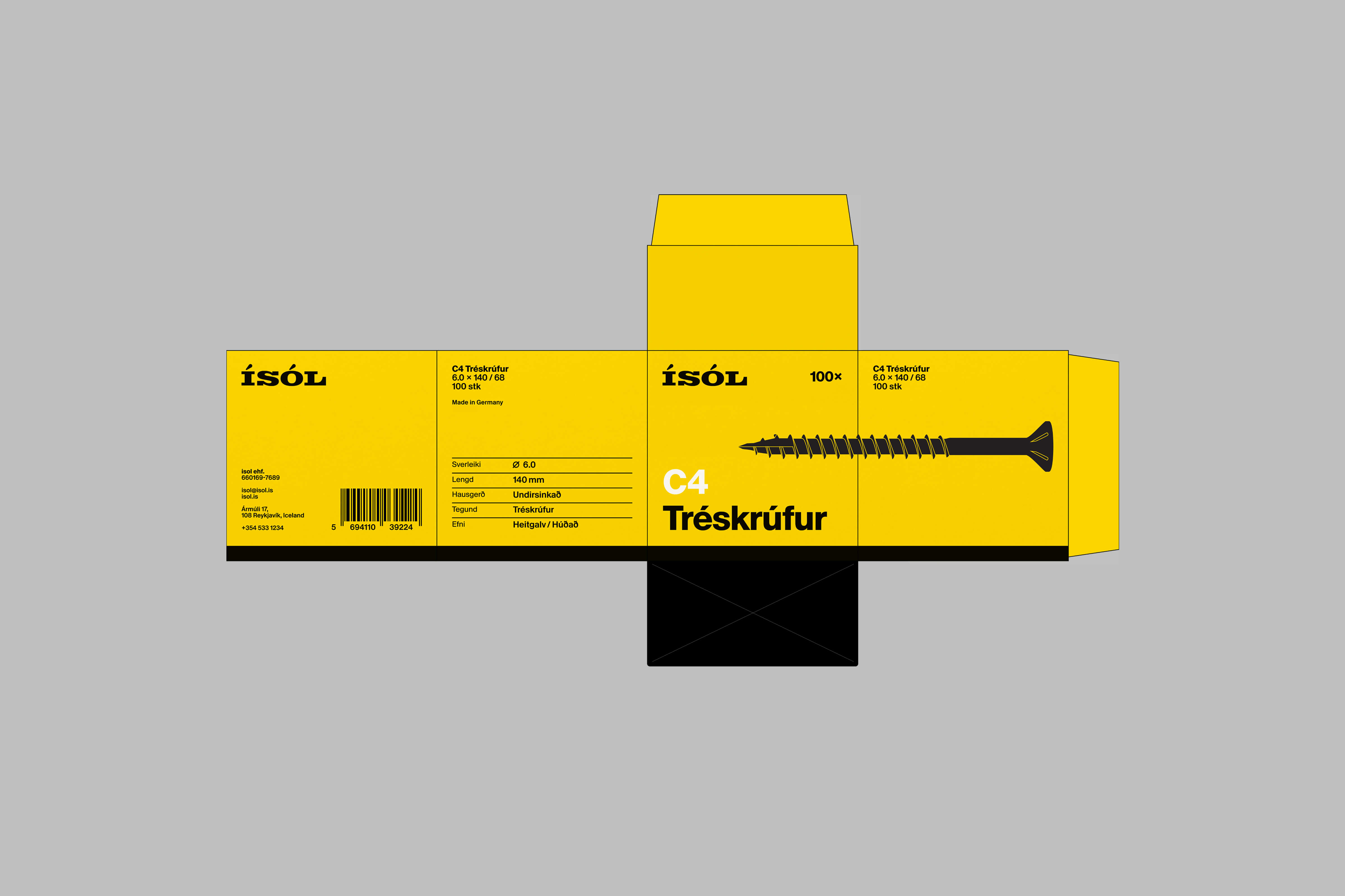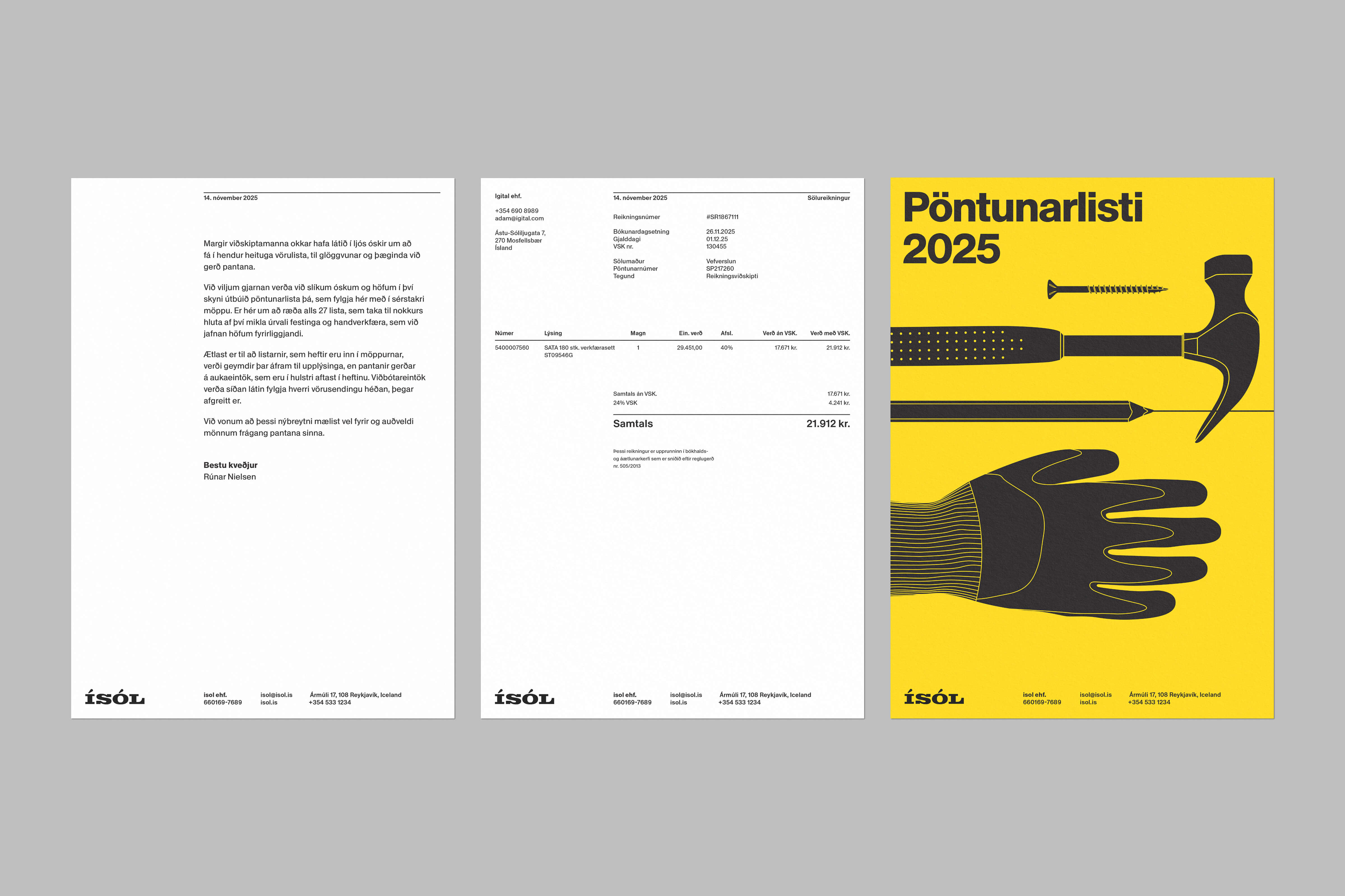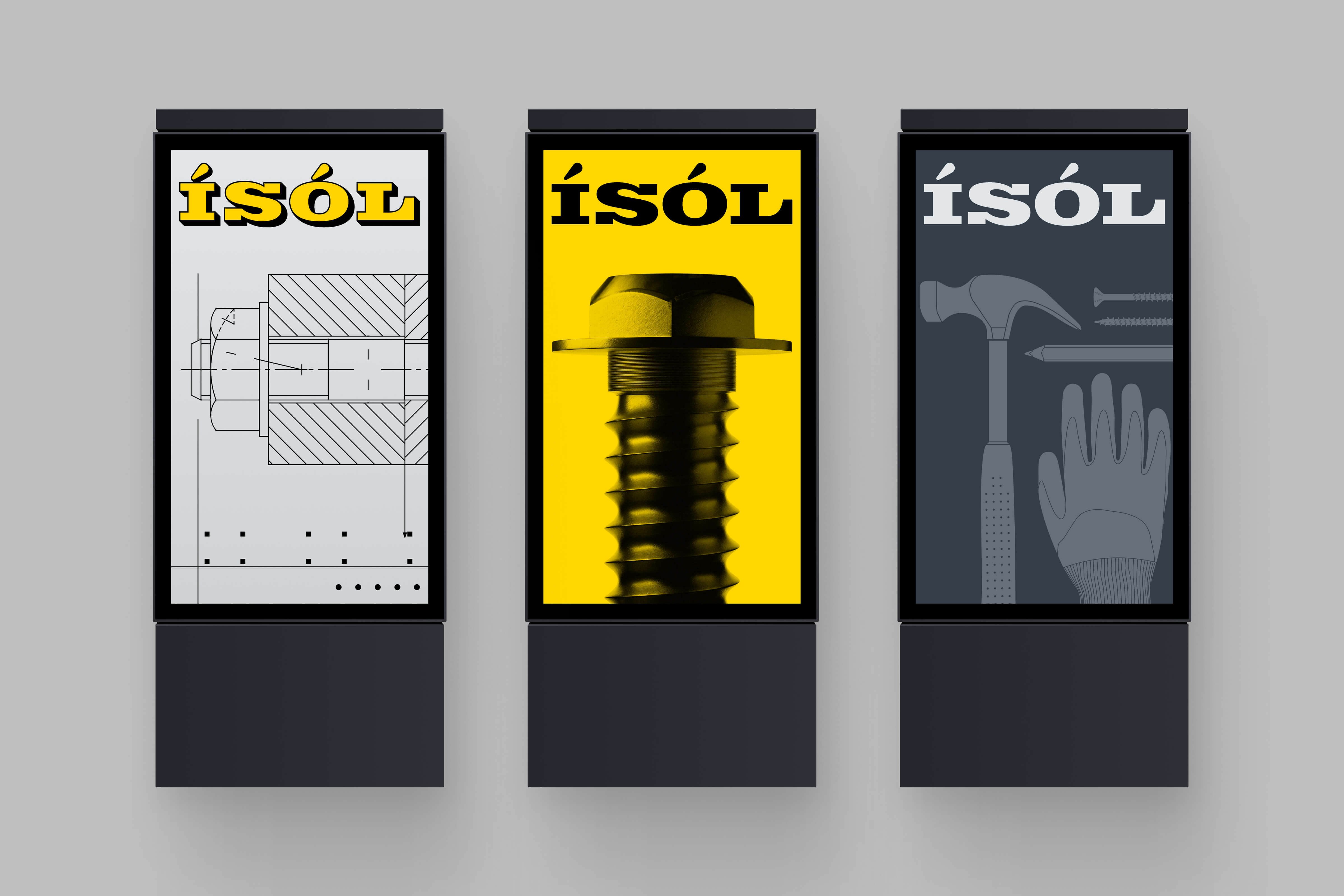 Identity for Ísol, a family-owned industrial supplier that has served Icelandic industry since 1959, specializing in high-quality tools, fasteners, and chemical products.